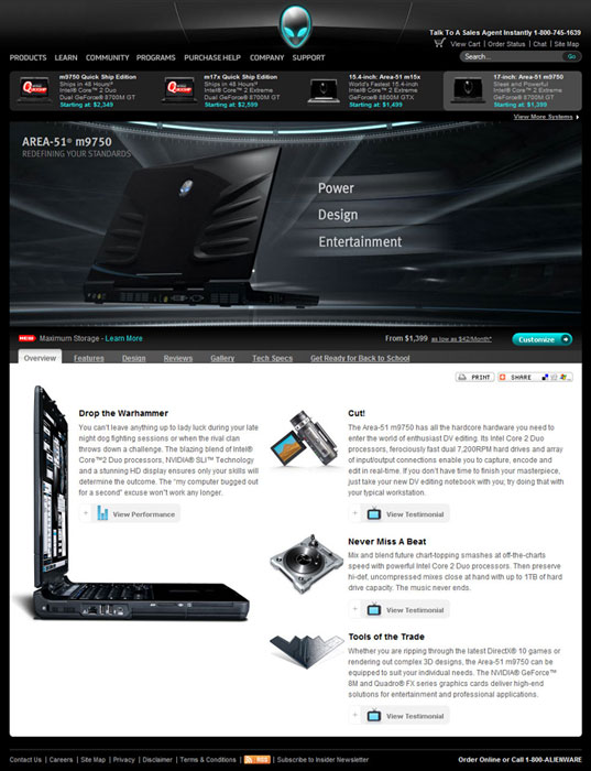 Alienware is one of the premier custom build computers on the market. Because of this their website required frequent updates and product refreshes in order to give the customer all the information about a prospective system. Our biggest goal when updating or creating new content was to make sure everything had a clean look and feel in order to promote the excellence of the brand.